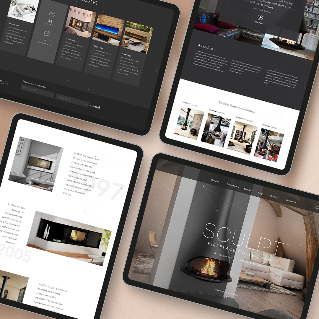 Sculpt Fireplace Collection, an Australian-owned company specialising in some of the world’s most sought-after high-end luxury fireplaces, needed a premium, timeless brand with a creative edge to reflect their exclusivity. As a newly established business, their challenge was to present their product collections online in a way that showcased the elegance and craftsmanship without offering direct eCommerce purchasing capabilities.